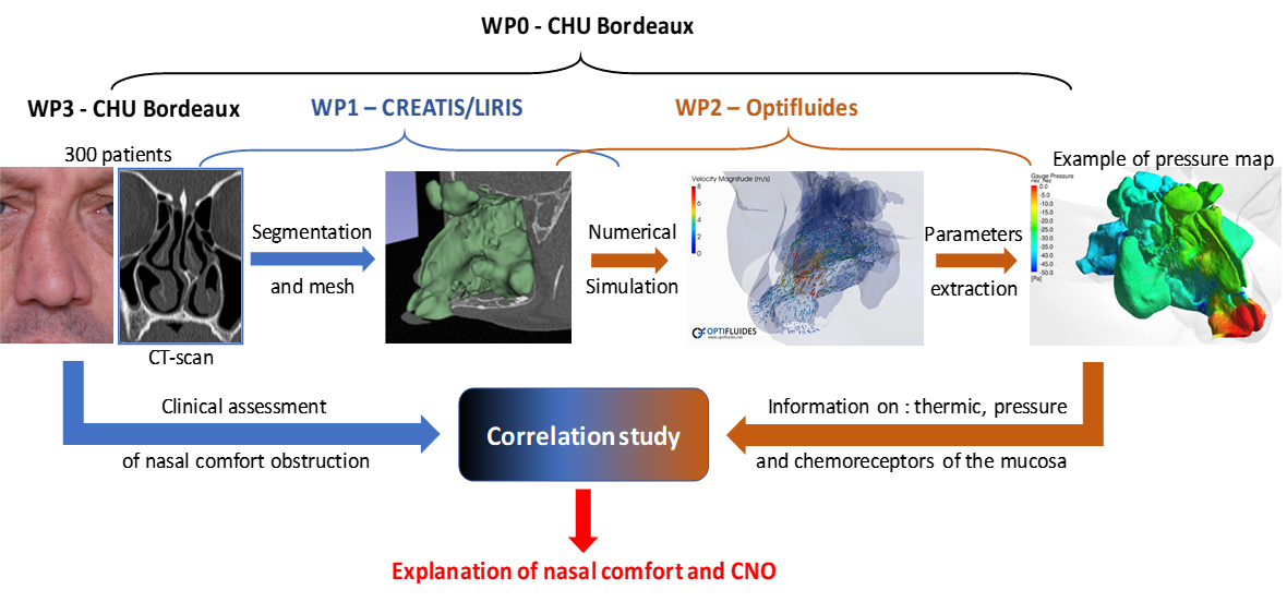 The JUNE project aims to demonstrate that modeling nasal airflows (CFDS) improves the understanding and diagnosis of functional respiratory disorders. It combines medical imaging, artificial intelligence, numerical modeling, and clinical validation to build a reliable digital twin of the nasal cavity. This project will establish quantitative measures of nasal obstruction correlated with clinical criteria.